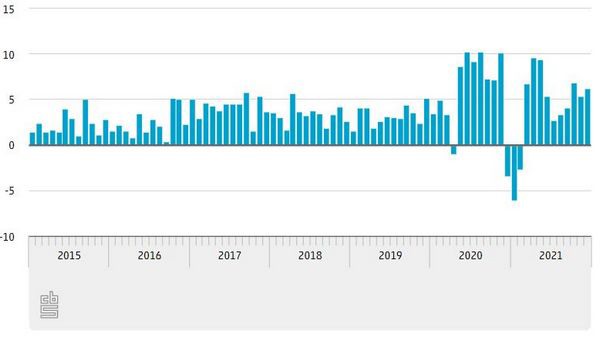 In 2021 heeft de detailhandel, voor koopdagen gecorrigeerd, 4,4 procent meer omgezet dan in 2020, meldt het CBS. Het verkoopvolume was 2,9 procent hoger. De omzet van de winkels in non-food groeide met 2,5 procent, de non-foodwinkels realiseerden een groei van 0,6 procent. Online is 23,6 procent meer omgezet dan in 2020. In december lag de omzet van de detailhandel 6,2 procent hoger.