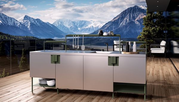In samenwerking met Studio Delineo en Massimo heeft Abimis haar eerste buitenkeuken ontworpen. ÀTRIA is volledig gemaakt van AISI 304 roestvrij staal - of AISI 316 roestvrij staal als het bij de zee of een zwembad wordt geïnstalleerd - een materiaal dat het perfect maakt om het hele jaar door buiten te koken. De keuken onderscheidt zich door zijn strakke, verfijnde en functionele ontwerp. De opslagmodules zijn in verschillende afwerkingen en in elke RAL-kleur te verkrijgbaar.