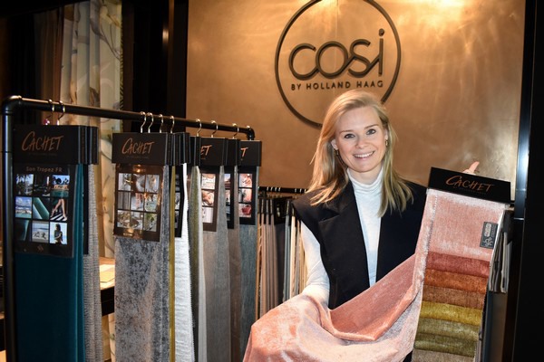 Holland Haag toonde op de afgelopen ETC Design Experience, die op 7 en 8 februari plaatsvond, de nieuwe Cachet-collectie. Centraal daarbij staan de kamerhoge kwaliteiten, vertelt projectmanager Ellen Clements-de Graaf in de showroom van de totaalleverancier van gordijnen en raamdecoratie.