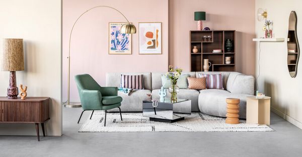 Ga terug in de tijd met de voorjaarstrend Fifties Vogue. De van oorsprong tijdloze Scandinavische woonstijl met organische, ronde vormen wordt in een nieuw pastelkleurig jasje gestoken. Deze trend kent een breed palet aan lichte tinten van lila, roze en warm oranje tot prachtige blauwgroene tonen. Ga voor een luxe uitstraling door gouden accessoires toe te voegen aan de styling. Vrolijke combinaties met licht hout, grafische patronen en bijzondere kunstobjecten zijn een must in deze trend. "We gieten vintage designvormen in de on trend materialen van nu. Denk bijvoorbeeld aan papieren verlichting, een velvet bank en vazen in gekleurd glas. Van deze bonte verzameling aan pasteltinten en bijzondere vormen word je meteen vrolijk."