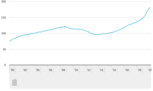 In januari 2022 waren de prijzen van bestaande koopwoningen bijna 91 procent hoger dan medio 2013, toen de huizenprijzen een dieptepunt bereikten. De prijzen zijn in die periode gestegen door onder meer de daling van de (hypotheek)rente, de stijging van de inkomens, de opkomst van de particuliere verhuur, ouderen die minder en later naar verzorgingshuizen gaan en een sterke toename van het aantal 25- tot 35-jarigen. Dit meldt het CBS op basis van het artikel 'Achtergrond bij de huizenprijsstijging vanaf 2013'.