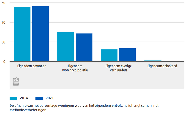 Terwijl het aantal jongvolwassenen in de periode 2014-2021 sterk steeg, gingen veel minder ouderen naar een verpleeghuis dan voorheen, waardoor zij langer in hun huis bleven wonen. Tussen 1 januari 2014 en 1 januari 2021 steeg het aantal 75-plussers in particuliere huishoudens met 546 duizend, terwijl het aantal 75-plussers in institutionele huishoudens met 12 duizend afnam. Daarnaast zijn er in deze periode relatief veel grote woningen bij gekomen, terwijl het aantal middelgrote woningen achterbleef en het gemiddelde huishouden kleiner werd. Mede door deze factoren is de vraag-aanbod-verhouding op de koopwoningenmarkt krapper geworden, ondanks het feit dat de procentuele groei van de woningvoorraad in dezelfde orde van grootte lag als die van het aantal 25-plussers en het aantal particuliere huishoudens, en zelfs groter was dan die van de totale bevolking.