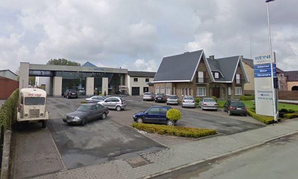Meubelen Weyne en links de bestickerde bestelwagen, waar de problemen door zijn ontstaan. Foto: google maps.