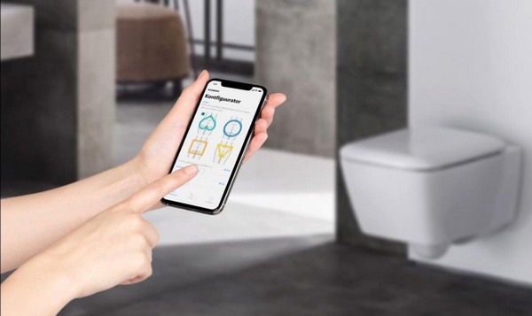 Voor het bepalen van de perfecte wc-bril heeft Geberit een speciale app ontwikkeld. In deze kontfiguurator-app kan de consument eenvoudig zijn of haar vorm billen selecteren. Door ook de bilomvang in centimeters en het lichaamsgewicht aan te geven, selecteert de app de best passende wc-bril.