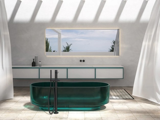 De Borghi vrijstaande badkuip is gemaakt van Cristalmood, een transparante hars die met zijn reflecties de badkuip tot de absolute protagonist van de badkamer maakt. Borghi badkuipen zijn verkrijgbaar in het gehele kleurengamma van Cristalmood by antoniolupi en in de nieuwe kleuren Mostato, Barrique, Vespero en Notturno.