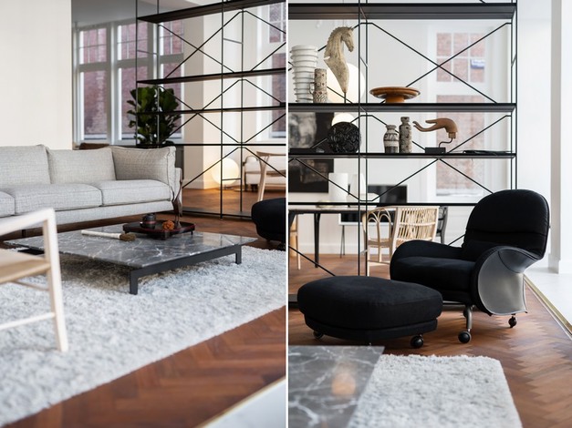 Piero Lissoni waakt als artdirector over het uitgebalanceerde handschrift en de ambachtelijke kwaliteit.’ In de geest van oprichter Maddalena vertrouwden Arie en Saskia hun intuïtie en nieuwsgierigheid. Arie: ‘Wij bieden een brede waaier aan binnen- en buitenlandse merken, de twee Italiaanse ‘vlaggenschepen’ zijn aanvullend en anders. Lifestylemerk Lema is gespecialiseerd in luxe kastensystemen en DePadova is het lichte, minimalistische buitenbeentje van het Italiaanse design. Verrassend is de doorstroom van de ene naar de andere plek. Zelf spreken we al voorzichtig van onze Gouden Driehoek. De expats die over de vloer komen, herkennen de kosmopolitische uitstraling – eigenlijk veel meer New York en Londen dan Kneuterdijk.’