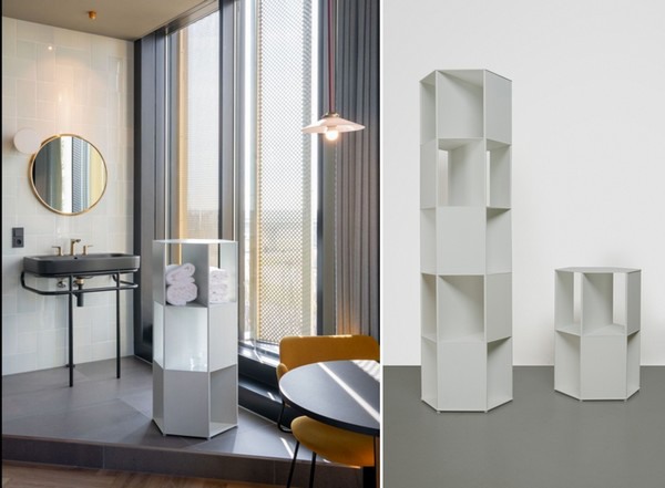 "Er zijn geen andere opbergmeubelen zoals deze. Nendo is erin geslaagd een typologie te creëren die heel goed geschikt is voor vrijstaande situaties. Het is uniek: de zeshoekige vorm creëert een richtingloos object dat niet kan worden bereikt met een rechthoekige vorm.
