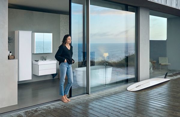 Bij wastafels doet de vorm van de binnenbekken denken aan het silhouet van door de wind gevormde duinen. Zachte contouren en vloeiende overgangen creëren discrete ruimte en zijn tegelijkertijd gemakkelijk schoon te maken. De uitgebalanceerde verhouding tussen de grootte van de wastafel, de vorm van de kraanplaat en de opbergruimte maken ze tot de perfecte metgezellen voor elke dag.
