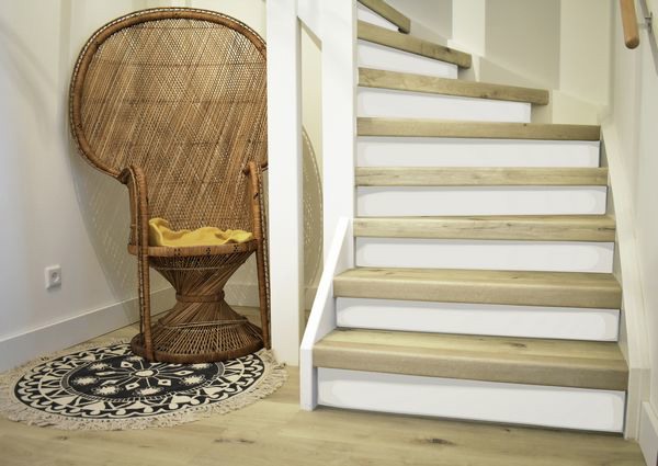 Rik vult aan: "Het mooie is dat de kleuren van de vloer hierbij overlopen in de trap. Tevens is het uniek dat er geen profiel nodig heeft."