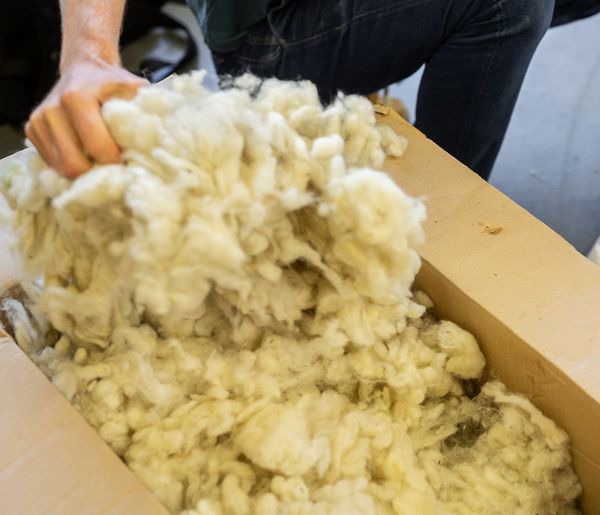 "We vullen de rugkussens van Kairos met 100% Nederlandse schapenwol. Jaarlijks produceren Nederlandse schapen samen 1,5 miljoen kilo wol." Omdat de wol van Nederlandse schapen niet zacht genoeg is om kleding van te maken en de vraag uit andere landen is stilgevallen wordt het nu beschouwd als afvalproduct.