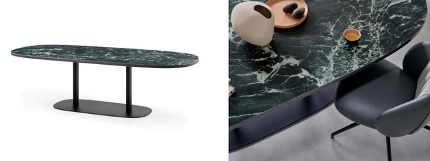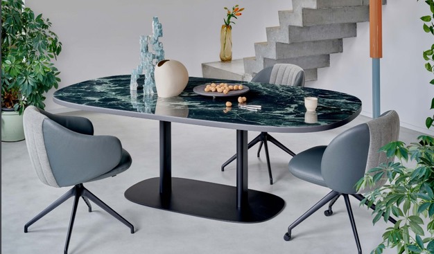 Leolux introduceert twee nieuwe producten in haar collectie: eetkamerfauteuil Baani en luxe eetkamertafel Toveri.