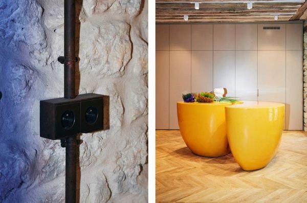Op een oppervlakte van slechts 170 m², verdeeld over twee verdiepingen, stelt de kleine creatieve studio niet alleen een exclusieve selectie designobjecten voor, maar ook een contrasterende stijlenmix met blootliggende architecturale elementen en hoogwaardige artistieke items. Een explosie aan kleuren, materialen en texturen. JUNG speelt hierin een centrale rol met een selectie schakelaars, contactdozen en dimmers in tijdloos LS 990-design met Les Couleurs® Le Corbusier-kleuren en uiteenlopende installatiemogelijkheden. Een mooi voorbeeld is de op een wand met blootliggend metselwerk gemonteerde LS Cube-variant.