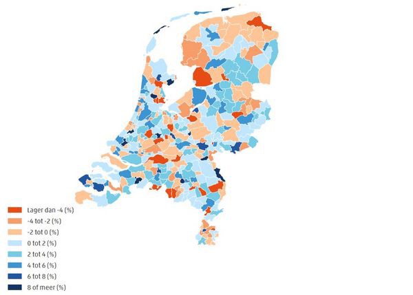 In 57 procent van de gemeenten steeg afgelopen jaar het aantal winkels. Procentueel gezien was de toename het grootst in Vlieland (18,2 procent), gevolgd door Bergen (L.) en Renswoude met 17,5 en 15,8 procent. Oostzaan (-9,4 procent) en Lopik (-8,8 procent) kenden de grootste afname. Onder de twintig grootste gemeenten groeide het aantal winkels het meest in Haarlemmermeer (4,3 procent) en Nijmegen (2,5 procent). In ’s-Hertogenbosch viel het aantal winkels het meest terug (1,2 procent).