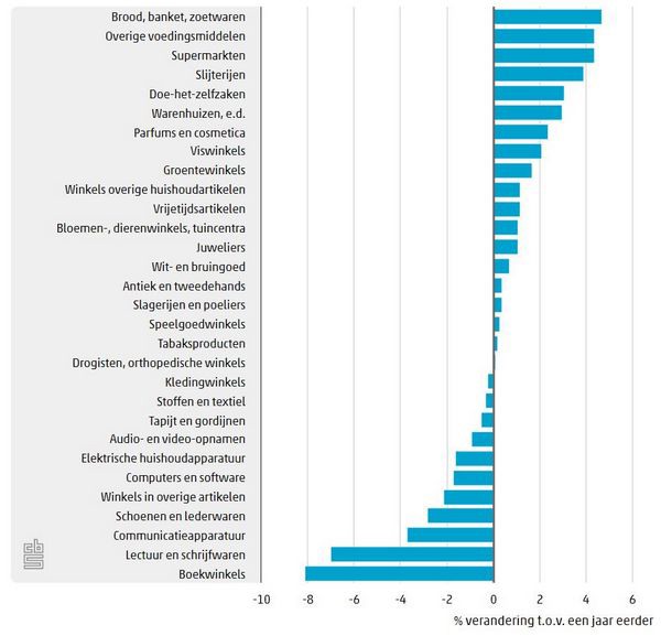 Op provinciaal niveau was de groei het sterkst in Zuid-Holland (1,5 procent) en Overijssel (1,2 procent). Alleen in Groningen nam het aantal winkels af (-0,7 procent).