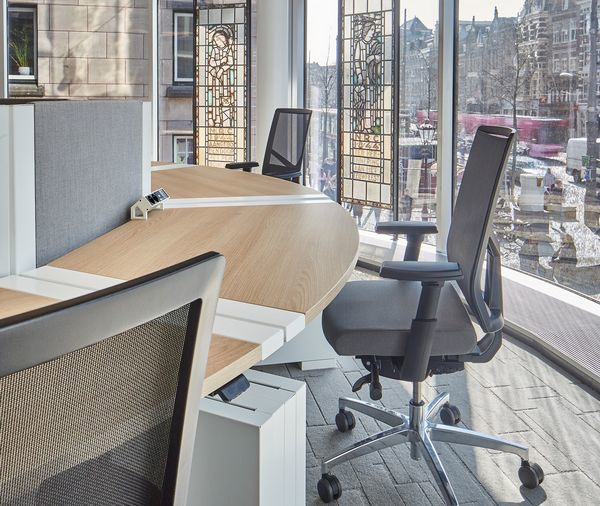 Bij de herinrichting van de kantoorruimte heeft PD Group verschillende zones en flexibele werkplekken gemaakt en bij de materiaalkeuze specifiek gekeken naar duurzaamheid en levensduur. Om voor de medewerkers een werkplek te creëren waar zij zowel zittend als staand kunnen werken, zonder afbreuk te doen aan het design, selecteerde NRC Media het elektrische zit-stabureau ‘De Rock’.