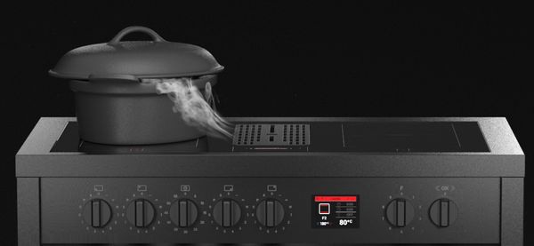 Steel presenteert de nieuwe Enfasi Mistral, het eerste fornuis dat een oven, een kookplaat en een geavanceerd afzuigsysteem in één product combineert. De krachtige (700m3/h) en geluidsarme (max.63dB) Brushless motor, regelbaar in vier snelheden met schuifregelaars aan de bovenzijde en voorzien van een uitschakeltimer, vangt stoom en geuren onmiddellijk op.