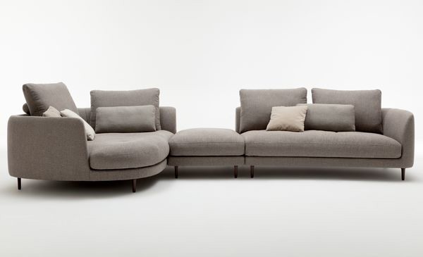 Ook het nieuwe stoffenconcept, waarin driedimensionale stoffen, met name bouclé en velours, een belangrijke rol blijven spelen en een nieuw opkomende voorkeur voor kleurrijke accenten, sluit aan bij deze woonwens. Organische, vriendelijke, omarmende vormen zijn de trend – en worden weerspiegeld in het pronkstuk van de beurs, de bank Rolf Benz KUMO.