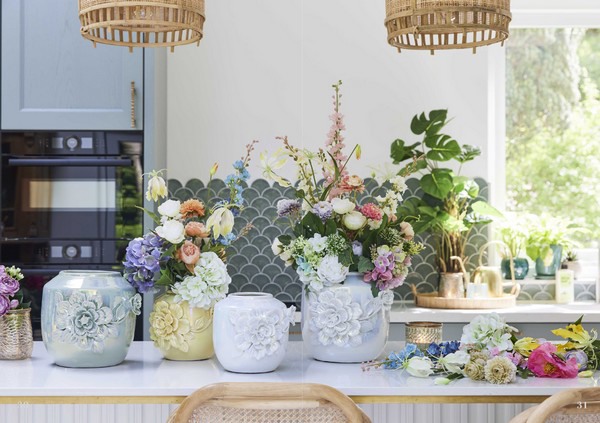 SPRING GARDEN is geïnspireerd door een veld vol bloemen in fleurige pasteltinten. Pluk de dag met bijzondere vazen in vrolijke kleuren en een ruime selectie aan de mooiste kunstbloemen.