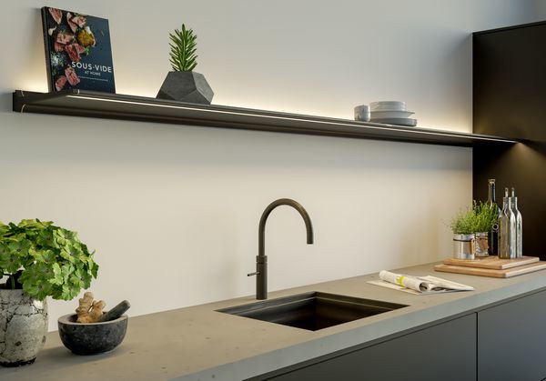 Al geruime tijd wordt designverlichting als een onderscheidend element geïntegreerd in de Novy Premium-producten. Functioneel licht gecombineerd met sfeerlicht, in de vorm van strooilicht op het plafond of geïntegreerd in het product zelf, zorgt voor een aangenamere beleving in de keuken.