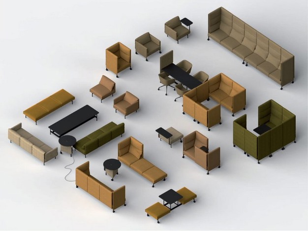 De mobiele meetingtafelmodules waarmee individuele zitbanken in een handomdraai tot akoestische pods kunnen worden samengesteld zijn ook het resultaat van deze wens naar flexibiliteit en polyvalentie.