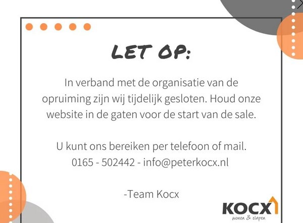 'Op dit moment staan er in de media allerlei stukken dat wij er mee zouden stoppen. Dit is zeker niet onze intentie! Aangezien Albert Heijn uit wil breiden en wij besloten hebben het pand aan AH te verkopen zijn we genoodzaakt een andere locatie te zoeken. Hier zijn we druk mee doende en hopen we op korte termijn iets te vinden waar we onze huidige exploitatie kunnen verwezenlijken', meldt Kocx Wonen & Slapen op haar website. Zo ver lijkt het niet meer te komen, want het de woninginrichtingszaak is gisteren failliet verklaard.