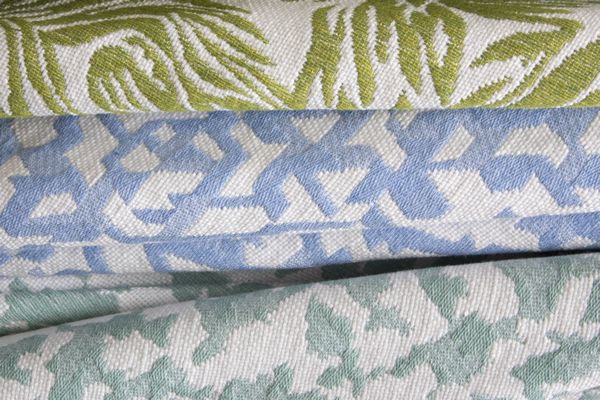 De blikvanger was bij uitstek de lancering van de outdoor collectie, waarbij Annabel rijke getextureerde stoffen heeft ontwikkeld voor outdoor meubels en accessoires. In deze collecties vind je onder meer de Tarifa terug, een unieke outdoor velvet. Daarnaast is er de rijke textuur van de Biarritz en de kleurrijke dessins van Bahamas en Bali. De stoffen worden gemaakt van ‘solution dyed olefin’ en ‘solution dyed acryllics’, en zijn licht- en weerbestendig, water resistent en wasbaar.