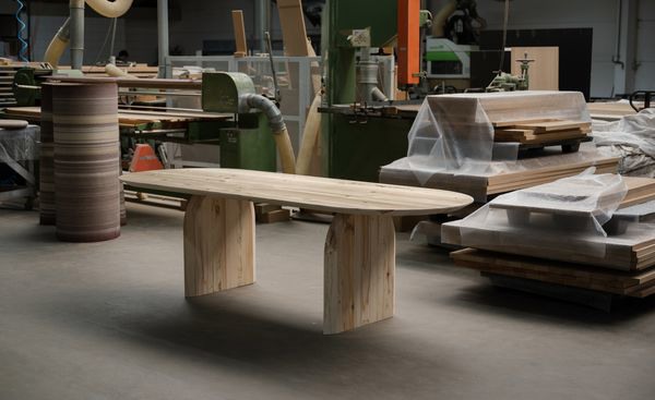 De Slot eettafel is een van de populairste bestaande designs van Studio HENK. Een verfrissend plat ovaal ontwerp met subtiele ronde vormen. Het gerecyclede hout dat gebruikt is voor deze tafel doet niets af aan de eenvoud en verfijnde uitstraling die kenmerkend is voor Studio HENK. De tafel is beschikbaar met een plat ovaal tafelblad in de afwerkingen natural light en zwarte beits en is samen te stellen in vijf maten, vanaf 2 tot 3 meter lang. Studio HENK en Renewi zijn samen aan het kijken hoe deze productiemethode in de toekomst ook toegepast kan worden op andere stukken uit de collectie.