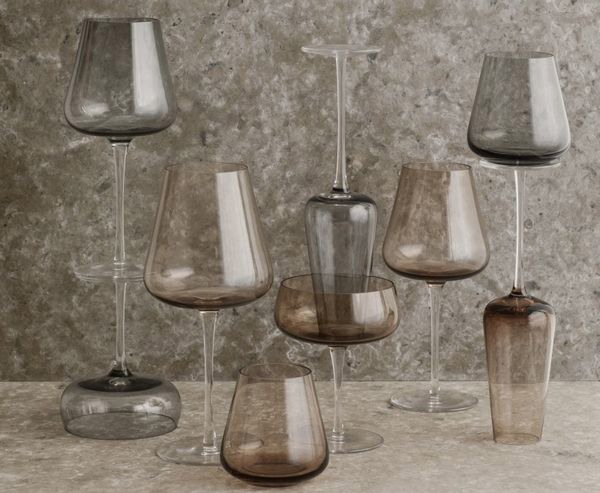 Het gekleurde glas, dat verkrijgbaar is in de kleuren Smoke en Coffee, staat op een heldere steel. Het zacht gebeeldhouwde silhouet maakt de glazen af. De bijpassende karaf met zijn glazen deksel is met dezelfde aandacht voor detail gemaakt: hoog, elegant en met zacht afgeronde randen.