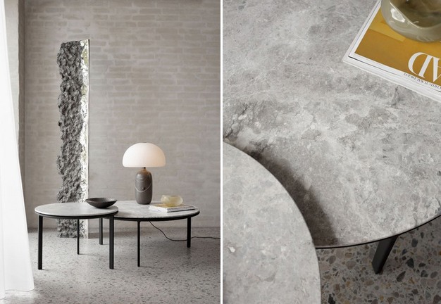 De Vipp salontafel is bedoeld voor de woonkamer of kantoorruimte en is een veelzijdige keuze die geschikt is voor een breed scala aan instellingen in zowel privé- als openbare ruimtes. Ontworpen met een driepotig frame en in twee maten, maakt het nieuwe tafelblad in 'hemelgrijs' gepolijst marmer de reeks salontafels compleet.