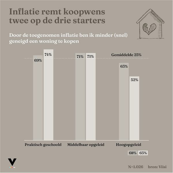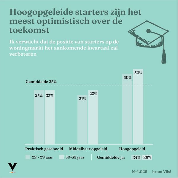 Vooral hoogopgeleiden zijn optimistisch, zo verwacht 22 procent van hen binnen een jaar een huis te kopen (Q2 2022: vijftien procent). Een derde zegt daarnaast in de afgelopen drie maanden positiever te zijn geworden over hun toekomstige kansen op de woningmarkt. “Dit is een duidelijke trendbreuk met de laatste vier kwartalen, waarin het vertrouwen onder koopstarters steeds verder afbrokkelde”, zegt Hergen Dutrieux, medeoprichter van Viisi Hypotheken. “Het lijkt erop dat starters ten opzichte van andere woningzoekers momenteel meer in de melk te brokkelen hebben. Maar vergis je niet; ondanks het groeiend optimisme is het voor starters nog altijd moeilijk manoeuvreren op de Nederlandse woningmarkt.”