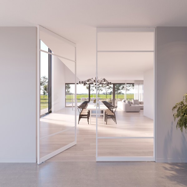 Industriële deuren geven elk interieur meer licht en maakt ruimtes optisch groter. Ze passen niet alleen in een moderne inrichting, maar misstaan ook niet in een landelijke woonstijl, zegt Deli Home. ,,Het geeft een ruimte een stijlvol contrast en verfraait elk interieur.’’