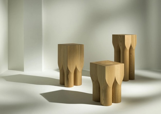 ÆTHER/MASS lanceert dit najaar zeven objecten: een verlichtingsobject, een stoel, twee schalen en een familie van 3 sokkels (die evengoed krukken of bijzettafels zijn). De objecten hebben een sculpturaal en architecturaal karakter, en balanceren tussen hedendaagse en traditionele elementen. Ze zijn het resultaat van een zoektocht naar de perfecte symbiose tussen idee en uitvoering; tussen theorie en praktijk; tussen concept en object.