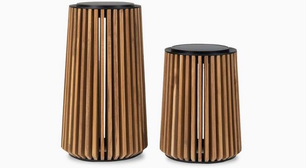 De eigentijdse Maya lamp zorgt voor balans tussen warm hout en zwart aluminium. Maya's behuizing is vervaardigd met hergebruikte teakhouten latten die een led-module op zonne-energie omarmen. Doorheen de openingen in het houten frame dompelt Maya de omgeving in een warme, verwelkomende gloed onder en creëert de duurzame lamp in een oogwenk een dromerige sfeer.
