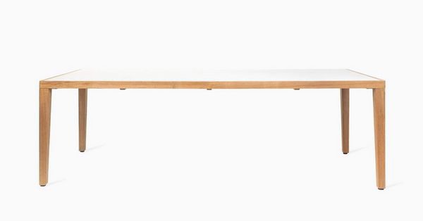 De Volta eettafel is een plek om samen te komen in openlucht. De combinatie van een lichtgrijs keramisch tafelblad en een strak maar stevig teakhouten frame zorgt voor een onderhoudsarme tafel. Het minimalistische ontwerp van Volta resulteert in een tijdloze eettafel.