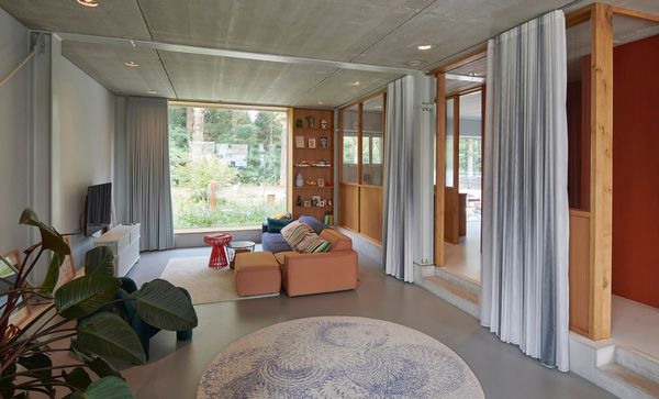 Er is gekozen voor industriƫle bouwmethodes. Een archetypische vorm waarin materialen, constructie en verbindingen gezien mogen worden. Een eenvoudig volume waar ruimte, licht, lucht, materiaalgebruik en kleur kwaliteit creƫren voor het gezinsleven.