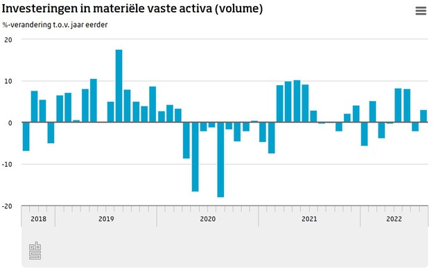De cijfers zijn niet gecorrigeerd voor werkdagen. Augustus 2022 had een werkdag meer dan augustus 2021. Volgens de CBS Investeringsradar zijn de omstandigheden voor de investeringen in oktober ongunstiger dan in augustus.