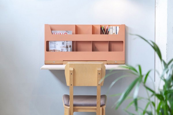 De Flip Desk combineert een praktisch opberg vak (dat plaats biedt aan items als een laptop, magazines of schrijfgerei) met een klein werkblad en wordt eenvoudig aan de wand bevestigd. Om het werkblad te gebruiken kan het naar beneden geklapt worden door middel van een speciaal ontworpen houten scharnier.