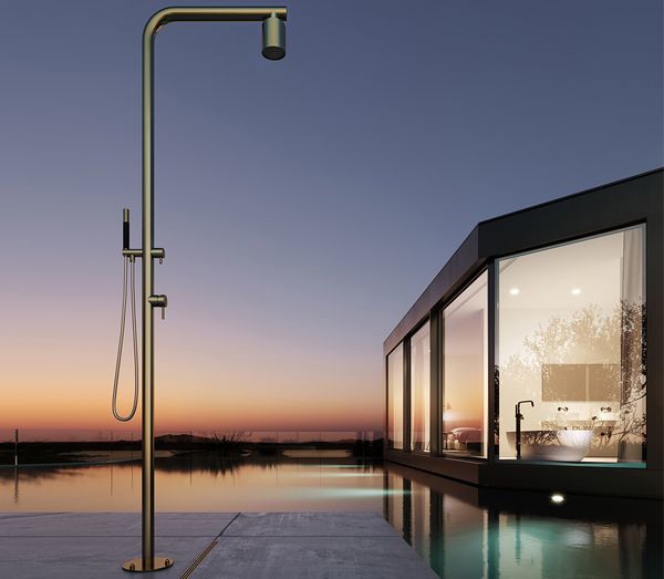 Nu de tuin steeds vaker betrokken wordt bij het interieur van het huis, kan een douche voor buiten niet langer ontbreken. Daarom is deze serie uitgebreid met een ware buitendouche! De AR090 is beschikbaar in RVS 316 en is uitgerust met een hoofd- & handdouche. Buiten douchen is nog nooit zo comfortabel geweest.