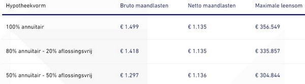 * Het gaat om een NHG-hypotheek met een hypotheekrente van 4,38 procent en een rentevaste periode van 10 jaar, waarbij rekening is gehouden met de bijtelling van het eigen woningforfait.