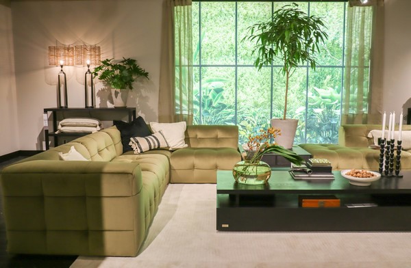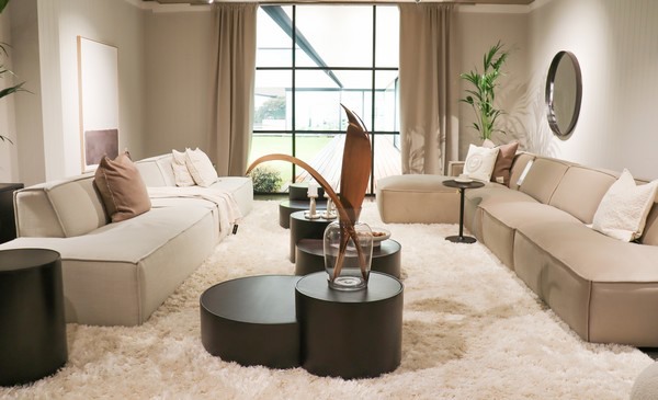 Dé centerpiece van de SS23 showroom is toch wel de Dazzle Sofa. Deze modulebank heeft dankzij o.a. de ronde modules vele mogelijkheden.