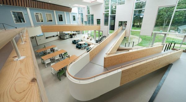 Stimuleren van een inclusieve en toegankelijke leeromgeving: een omgeving die optimaal is ingericht voor iedereen, ongeacht achtergrond, (mentale/fysieke) vaardigheden of neurotype is het streven. Dit betekent ook het bevorderen van toegankelijkheid en het makkelijk vindbaar maken van de juiste route in een gebouw. - Verbeteren binnenluchtkwaliteit: weloverwogen keuzes voor materialen kunnen het binnenklimaat positief beïnvloeden. Een goede luchtkwaliteit draagt niet alleen bij aan het welzijn en de academische prestaties, maar beperkt ook de gezondheidsrisico’s door astma en allergieën.