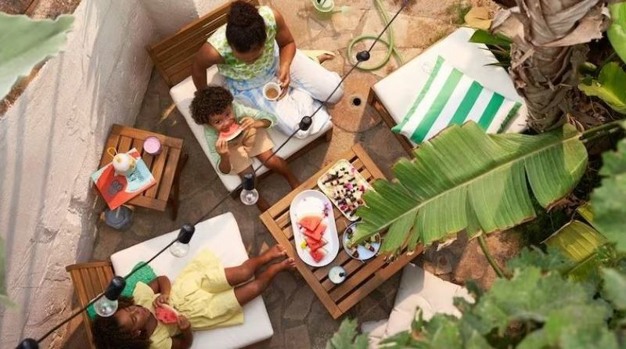 Terwijl de temperaturen buiten dalen, komt Ikea met een vrolijke buitencollectie. De nieuwe producten geven sfeer aan tuin en balkon. "Serveer een uitgebreide lunch aan de buitentafel van massief acaciahout of ontspan met een goed boek op het beige ligbed. Versier je tuin met de sfeervolle lampionnen en organiseer een gezellige barbecue op een warme zomeravond. Liever een dag met je voeten in het zand?", begint Ikea haar persbericht. De nieuwe collectie is vanaf maart in alle Ikea winkels en online verkrijgbaar.