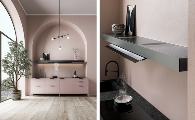 Shelf, uit de nieuwe Elements-collectie van het bedrijf, is een innovatieve zelfafzuigende oplossing die speciaal is ontworpen om in keukenprojecten te worden geïntegreerd. Dankzij zijn exclusieve kenmerken heeft Shelf ervoor gezorgd dat Falmec - winnaar van dezelfde prijs in 2022 met zijn Light afzuigkap - de Special Mention kreeg bij de editie 2023 van de German Design Award (GDA) in de categorie Excellent Product Design Kitchen.