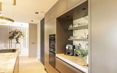 Met Dekton Khalo heeft Clear Kitchen gekozen voor een ecletisch maar toegankelijk concept. "Het straalt warmte uit, het is modern maar vooral ‘anders’. De toepassing van materialen zijn een echte eyecatcher. Waar alle kleuren prachtig samensmelten en het toch een opvallende toepassing blijft. Deze keuken onderscheidt zichzelf door de samensmelten en het toch een opvallende toepassing blijft. Deze keuken onderscheidt zichzelf door de samensmelting van materialen", laat Cosentino weten.