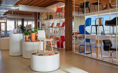 De showroom biedt ruimte voor hybride werkvormen, verschillende activiteiten en events. De gemeenschappelijke ruimtes geven de mogelijkheden tot interactie, een focuskantoor bevordert geconcentreerd en individueel werken, terwijl het dynamische gedeelte dient als locatie voor Vitra-projectteams en workshops met klanten. De inspirerende adviesruimte van de Vitra Colour & Material Library, met een gecureerde selectie stoelen van Vitra en Artek, stimuleren de samenwerking met klanten. Seizoensgebonden installaties vormen een aanvulling op de Vitra Home Collectie.