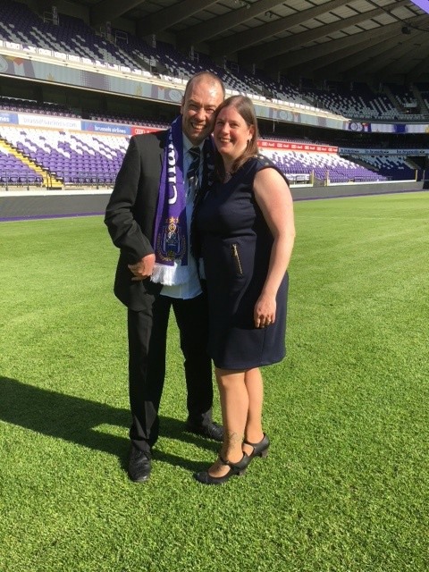 Steven met echtgenote Marijke in het voetbalstadion van Anderlecht.