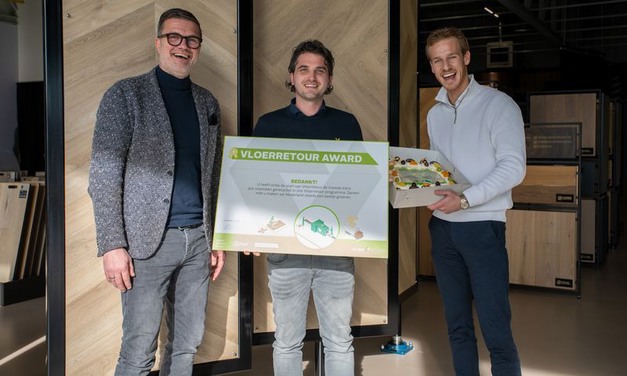 Vorige week was de week van de circulaire economie. In deze week stond circulair ondernemen centraal, een uitgelezen kans om de twee Vloerretour dealers die het afgelopen halfjaar de meeste pvc snijresten gerecycled hebben in het zonnetje te zetten: Huitema Woninginrichters en ICM Projectinrichting. Algemeen directeur Klaas Bakker is samen met de salesmanagers persoonlijk bij hen langs geweest om een speciale Vloerretour award te overhandigen voor deze duurzame prestatie.