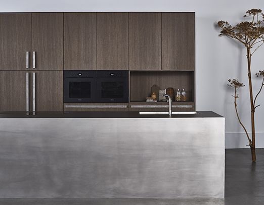 Ook de handgemaakte handgrepen ondersteunen het lijnenspel. Als onderdelen van een groter geheel worden ze ingezet om alle elementen naar elkaar toe te trekken. Gemaakt van hetzelfde flinterdunne staal als het kookblad, zorgen ze voor eenheid en balans. Dit is de plek om samen te komen met vrienden en familie en rust te vinden in het dagelijkse leven.