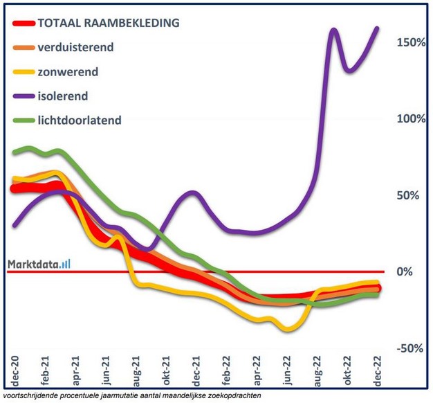 Marktdata.nl heeft het Nederlandstalige zoekverkeer over raambekleding voor binnenshuis in de Google zoekmachine onderzocht over de afgelopen vier jaar in Nederland. Omdat de consument internet meer en meer gebruikt in de oriëntatiefase, bieden statistieken over zoekvolumes inzicht in actuele ontwikkelingen van consumentenbehoeften. De analyses hebben betrekking op bijna 100 miljoen zoekopdrachten die gerelateerd zijn aan raambekleding voor binnenshuis.