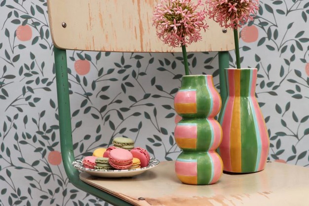 Maar ook de retro vaas Judy, verkrijgbaar in twee verschillende modellen, en vaas Cole zijn blikvangers bij het interieurbedrijf uit Aalsmeer. "De kleuren en ronde vormen maken van vaas Cole echt een snoepje." Bijna Het gehele assortiment is op voorraad leverbaar vanuit het distributiecentra in Aalsmeer en Polen.